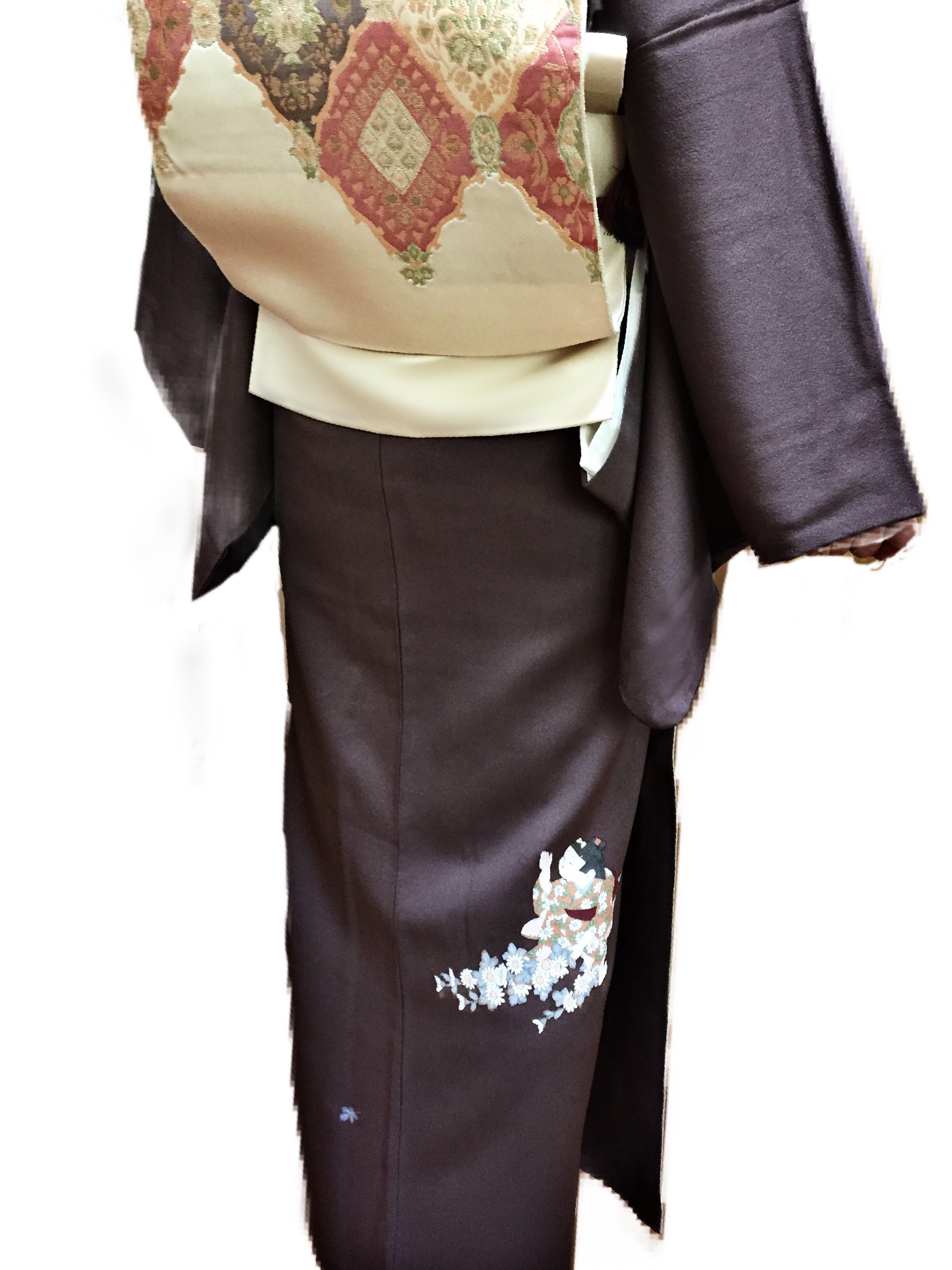雨の日の入園式、ご家族で参列、お祝いされました。雨コートを羽織る仕草がとても可愛らしくて、シャッターを押しました。付け下げは手描きの友禅でしょうか、とても美しいお着物でした。